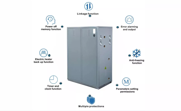 La pompe à chaleur géothermique de 39 kW à 200 kW de SPRSUN est le système géothermique le plus efficace pour vos besoins de chauffage, de refroidissement et d\"eau chaude. Il fonctionne sur un système en boucle fermée et a un COP élevé allant jusqu\"à 5,25. L\"unité dispose d\"un contrôle de pompe à eau de circulation, d\"un chauffage électrique de secours, d\"une fonctionnalité de minuterie et de multiples protections de sécurité. Il peut également s\"intégrer de manière transparente aux systèmes de contrôle externes pour un fonctionnement marche/arrêt facile.<\/span><\/p>